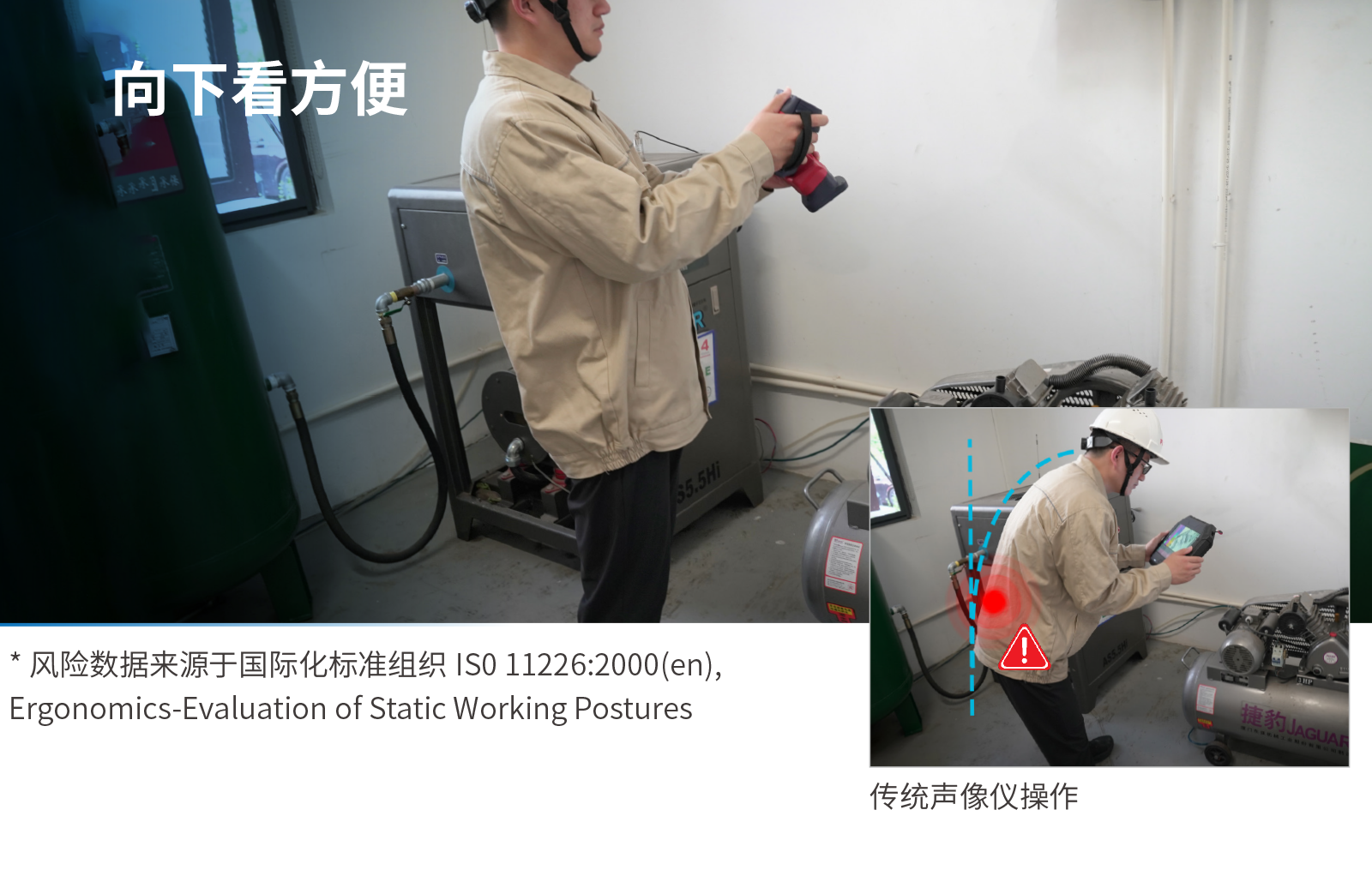 • 国际化标准ISO 11226指出:弯腰作业占比仅 10%时,腰损伤风险就已升至 2.4 倍。